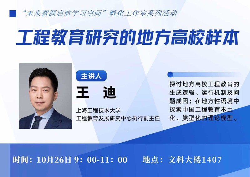 10月26日,创新院王迪主任应华东师范大学高等教育研究所徐国兴研究员团队邀请,以“工程教育研究的地方高校样本”为主题开展专题讲座,徐国兴研究员主持,我院王秀秀、陈岩杰老师参加讲座,现场师生积极参与交流。